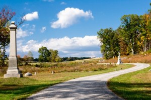 While my hyperactive imagination called the shots at night, I was much braver in the light of day. As often as I could, I went running on the trails that crossed the battlefields, drinking in the landscape steeped in so much history. Often, I was alone on the tranquil paths. Dense trees, lush grass and the first flowers of spring created a park-like atmosphere, but then I’d stumble across a moss covered statue of a Civil war soldier, a stark reminder that more than a century ago, nearly 50,000 men lost their lives during the three-day blood bath on those very fields.